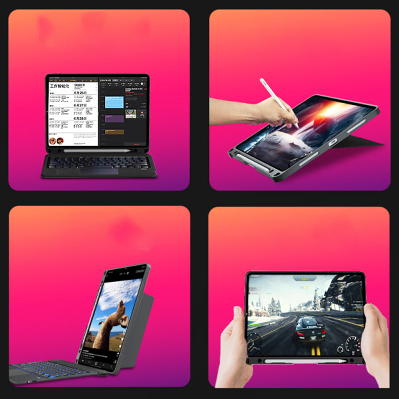 - MAGNETIC DETACHABLE KEYBOARD - The keyboard is firmly adsorbed on the protective case through a long magnetic strip. The keyboard can be removed and stored separately, leaving only the protective case and back stand. The iPad can be placed on your knees to read, watch videos or draw pictures. This makes it easy to switch between iPad and Mac.